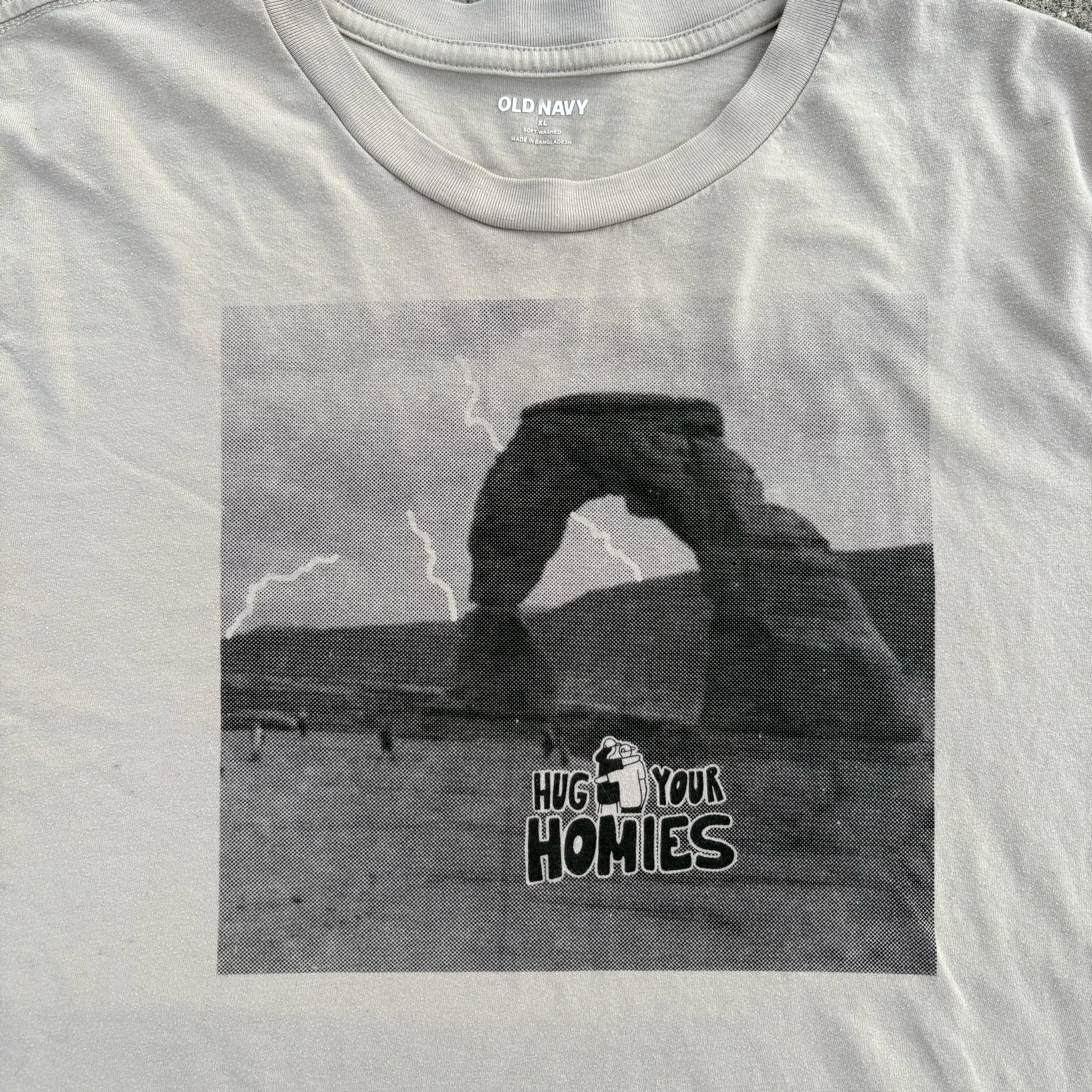 Hug Your Homies Delicate Arch during a thunderstorm Print. The lightning bolts were drawn over to be more prominent.