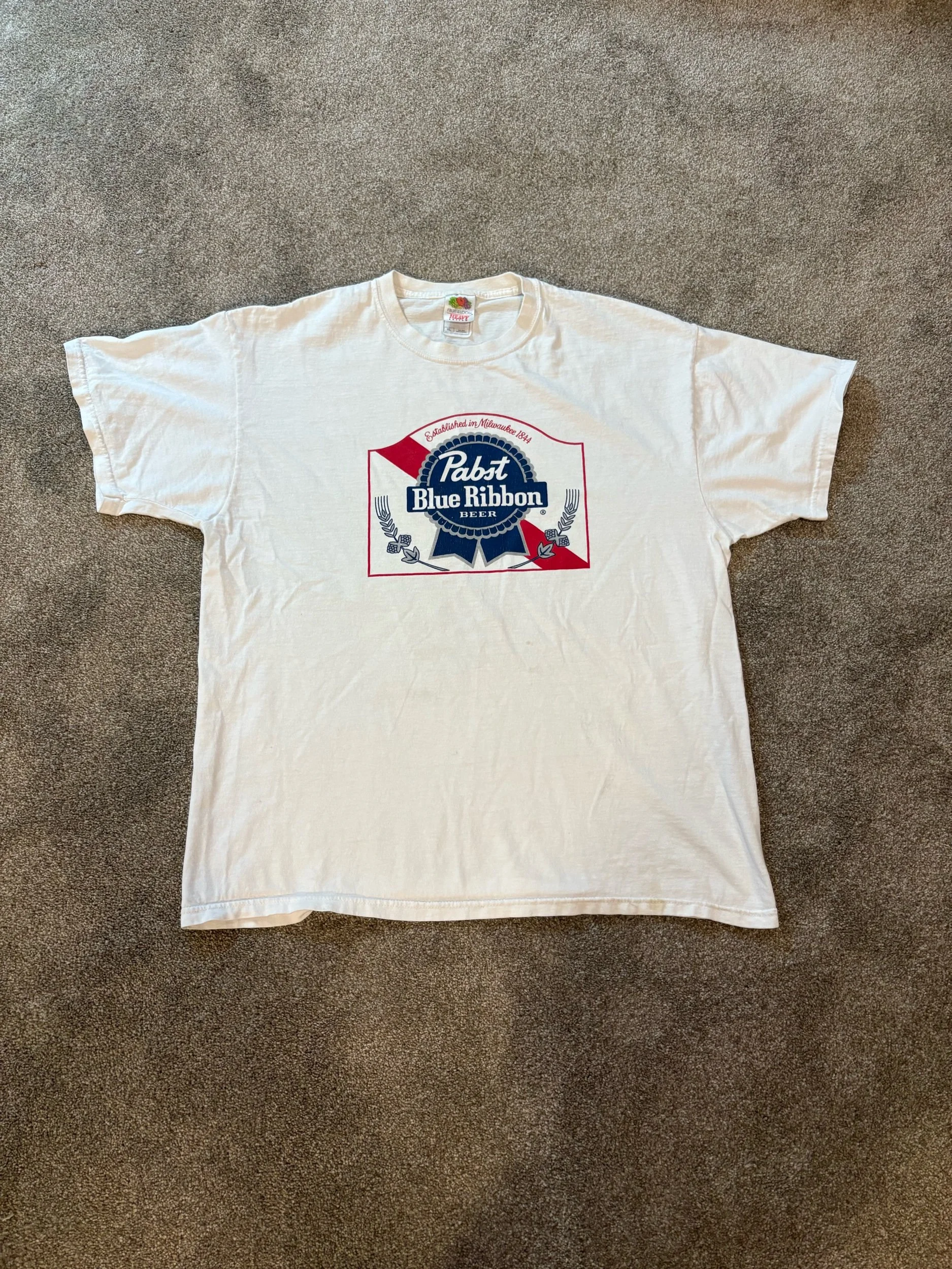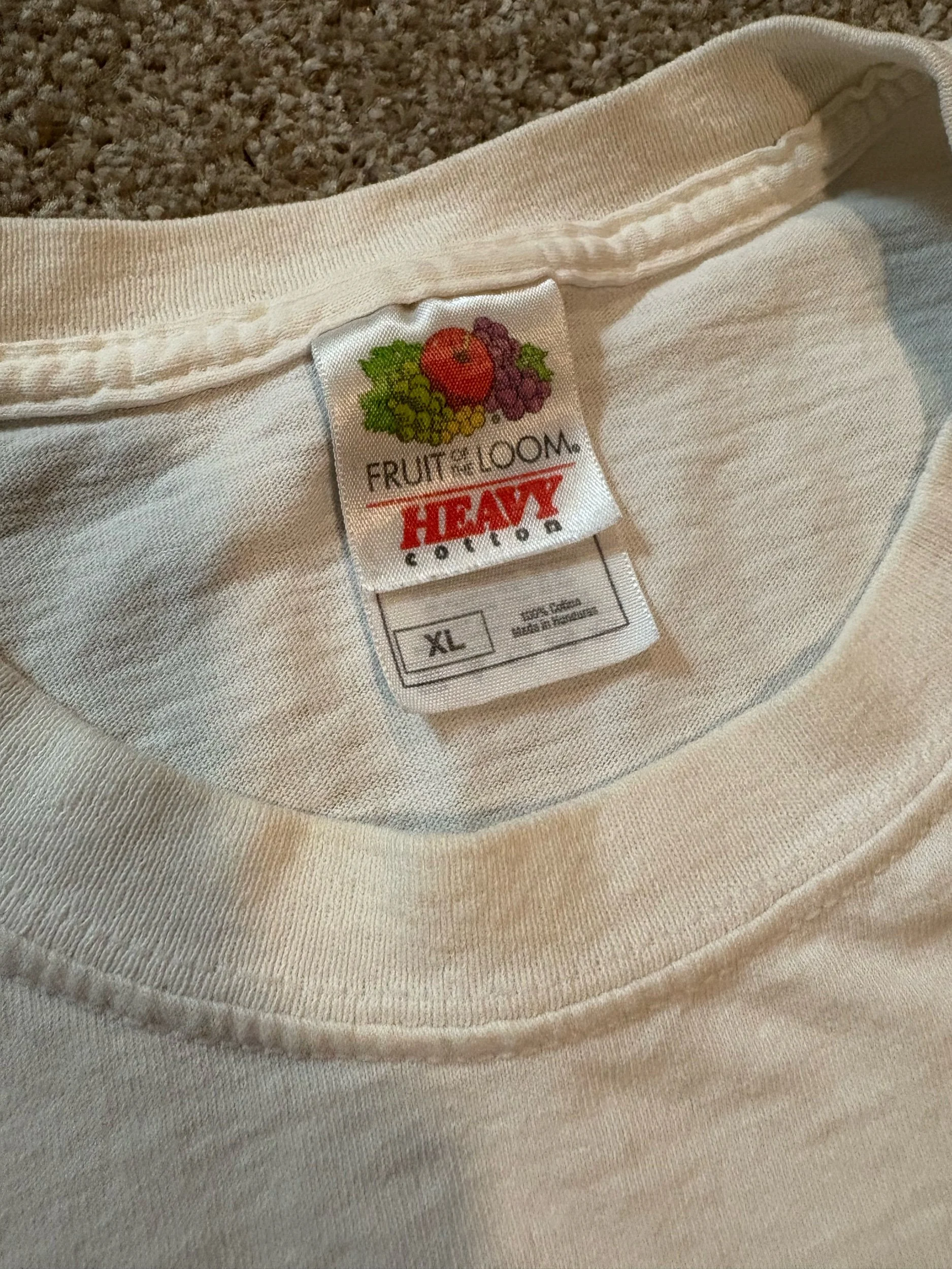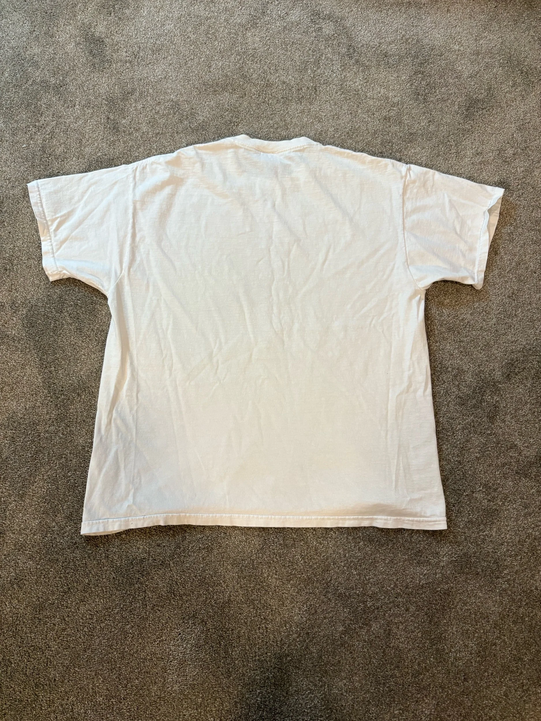 Quite possibly the greatest t-shirt ever made in my opinion. Does have a teany tiny stain as shown in pictures. Vintage late 90s or early 2000s Fruit of the Loom Heavy Cotton Tee