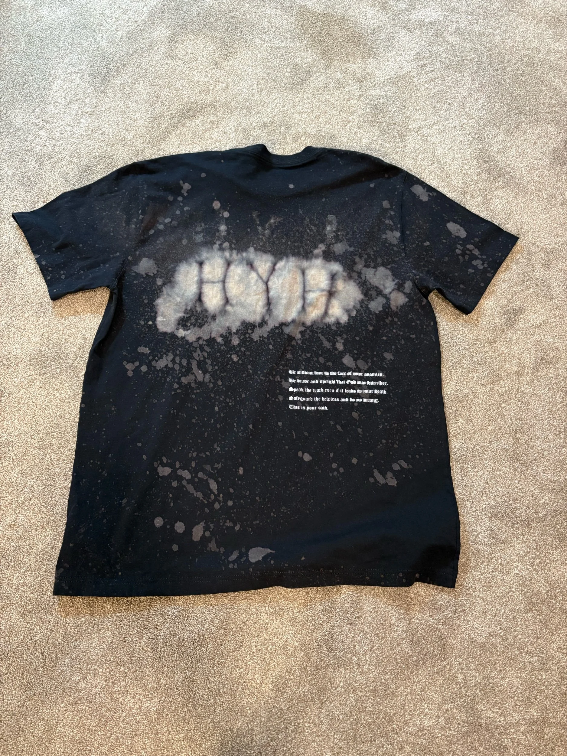 Quote Reads “Be without fear in the face of your enemies. Be brave and upright that God may love thee. Speak the truth even if it leads to your death. Safeguard the helpless and do no wrong. This is your oath.” The Knights Oath from the movie “Kingdom of Heaven”, delivered by Matthew McConaughey. Also a sample in a Mac Miller song off the album “Faces”. This album really helped me through some tough times and this quote always resonated with me when I was struggling.